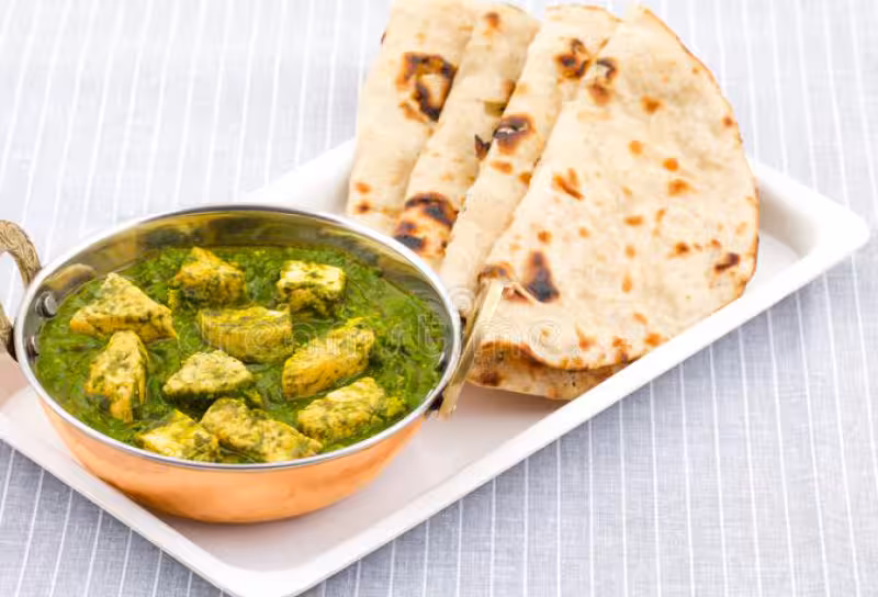 Palak paneer roti is a delightful combination of palak paneer and whole wheat flatbread (roti), where the creamy spinach