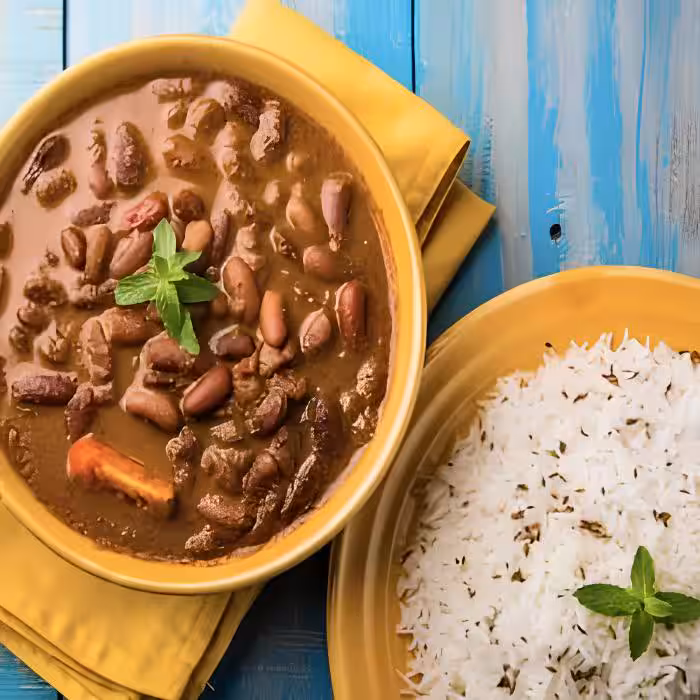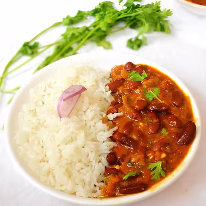 Rajma chawal is a beloved North Indian dish consisting of tender kidney beans (rajma) cooked in a flavorful tomato-based gravy.